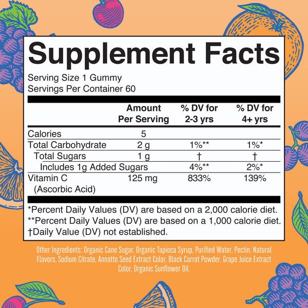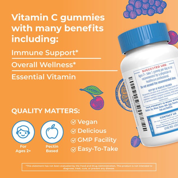 - With three flavors in one bottle — cherry, orange, and grape —these vitamin C gummies are a delicious way to incorporate additional vitamin C into your daily diet!